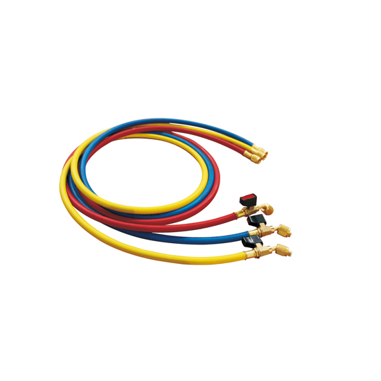 Шланги заправочные VALUE 1,5m с шаровыми вентилями (R22; к-т 3шт; R&Y&B 1/4"-1/4")